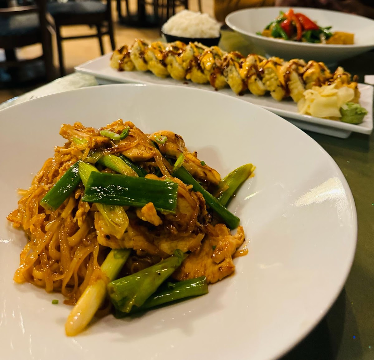 The menu is where the personality really shows. Thai classics like pad thai, green curry, and tom yum soup sit comfortably alongside sushi rolls that range from simple and clean to playful and bold. I remember watching the sushi chef prepare a spicy tuna roll with a level of focus you usually see in higher-end spots. That attention to detail translates directly to the plate. The rice is properly seasoned, the fish tastes fresh, and the balance between heat, acidity, and sweetness is spot on. According to data from the National Fisheries Institute, freshness and proper handling are among the top factors influencing sushi quality, and you can tell those standards are being taken seriously here.